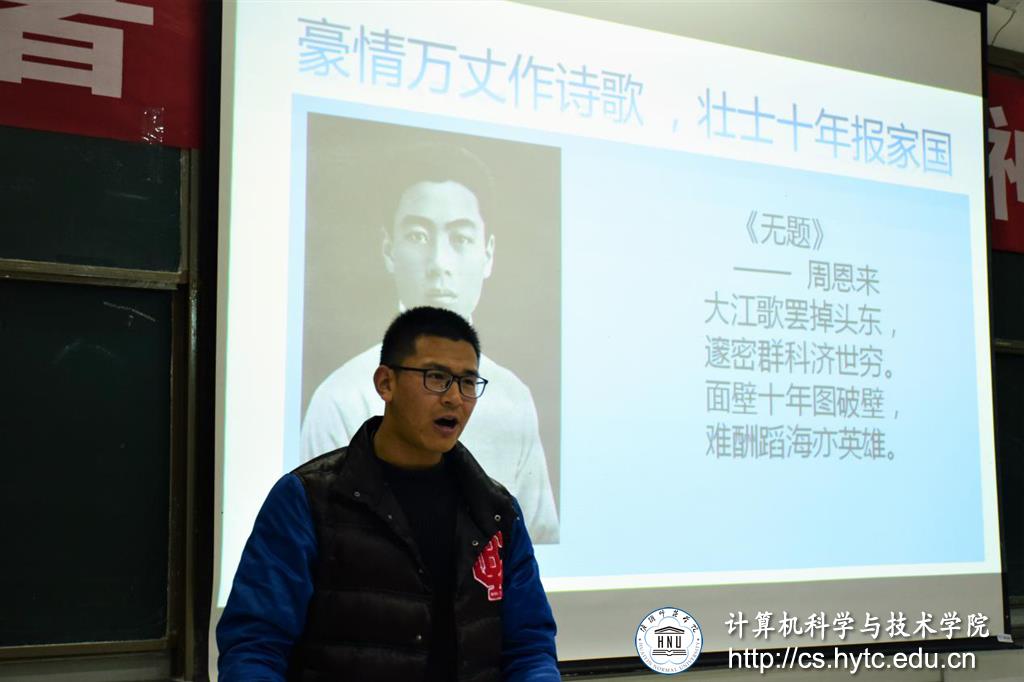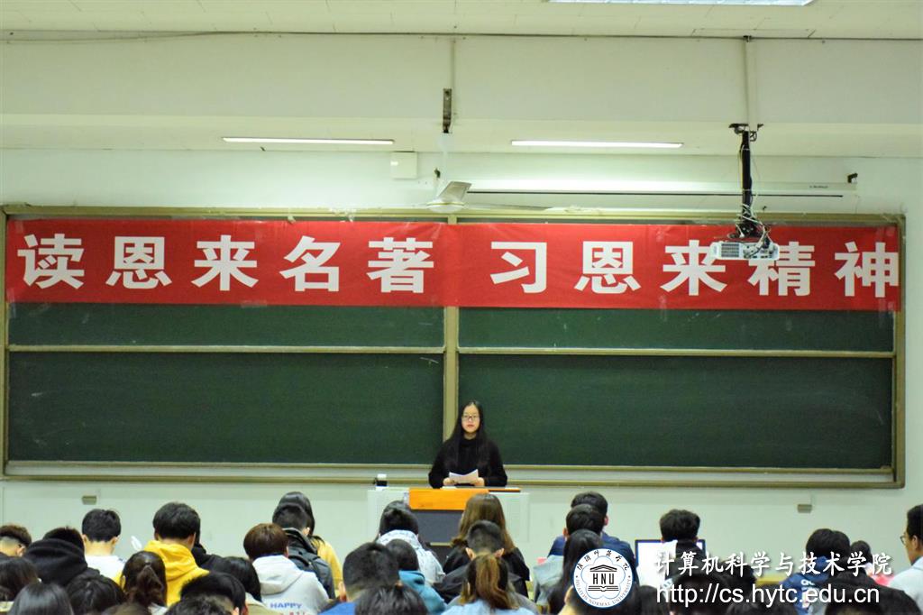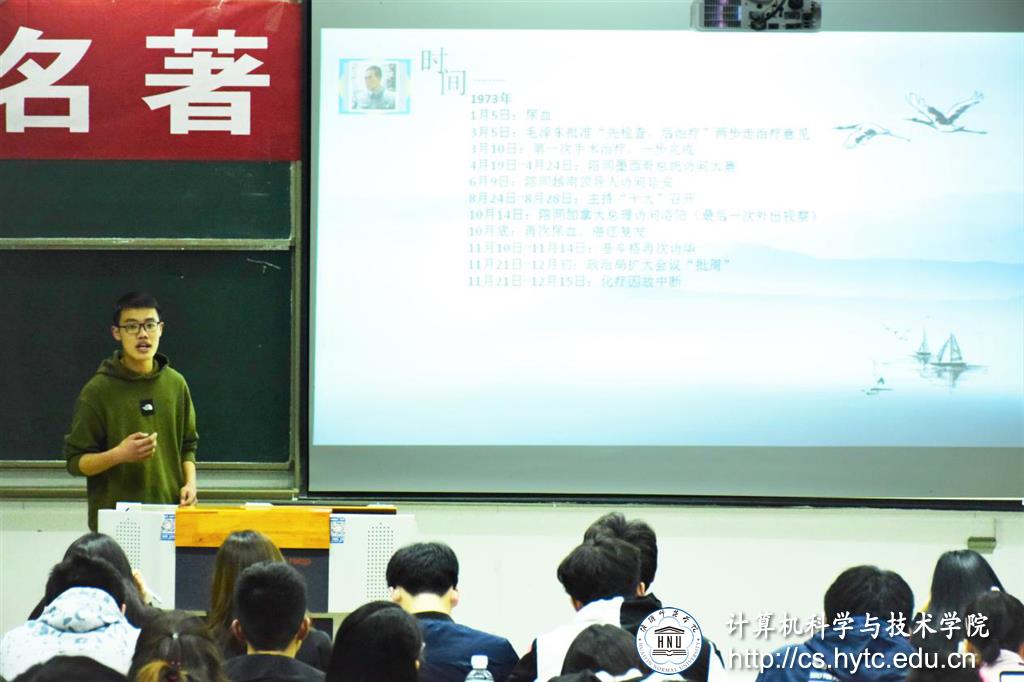 活动分为员工分享、问题答辩和即兴分享三个环节。在员工分享环节中,十九位参赛选手依次上台发表了自己对周恩来书籍品读的感受与体会,带领大家走进周总理的精神世界。选手们所分享的《周恩来传》、《周恩来最后600天》、《青年周恩来》等著名书籍都讲述了一位伟人在新中国建设的道路上一往无前,全心全意为人民服务的故事。分享中,1708班徐天祺同学从主观和客观两方面生动讲述了自己的心得体会,并慷慨激昂地表示要努力学习周恩来严于律己、坚持不懈、大公无私的精神,要做一名有信仰、有追求、有奋斗、有奉献的有志青年。