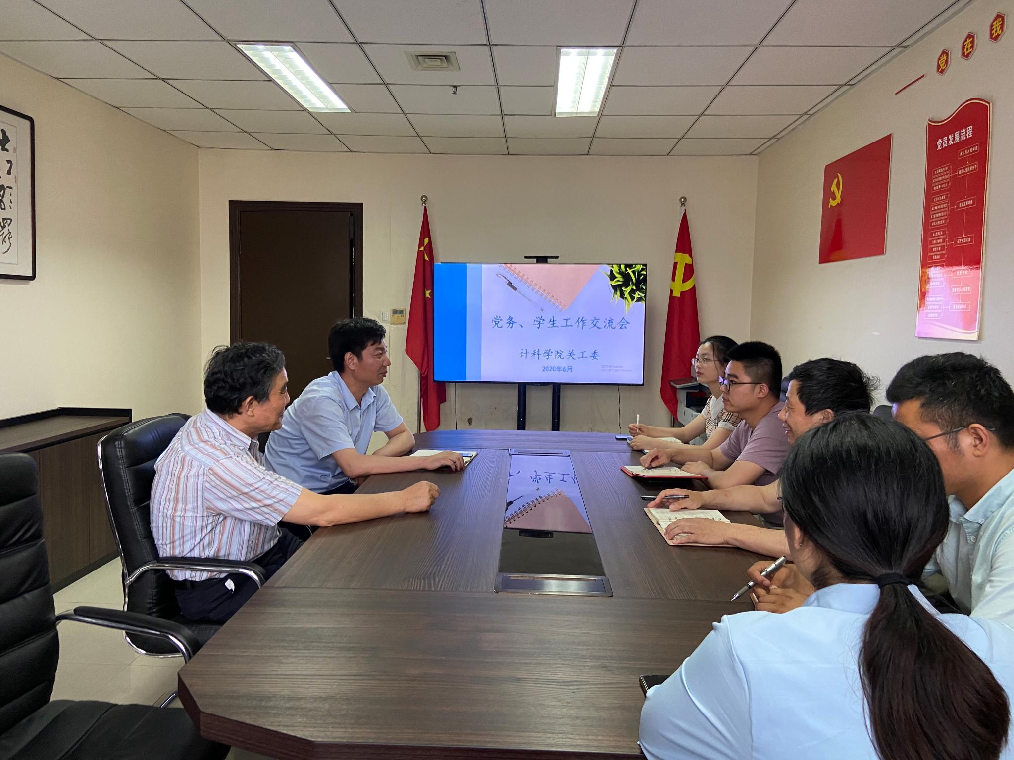6月30日下午,计科公司关工委在理工北楼503开展党务、员工工作交流会,本次会议由公司党委书记高卫国主持,院关工委常务副主任郭启松、公司全体辅导员参加。