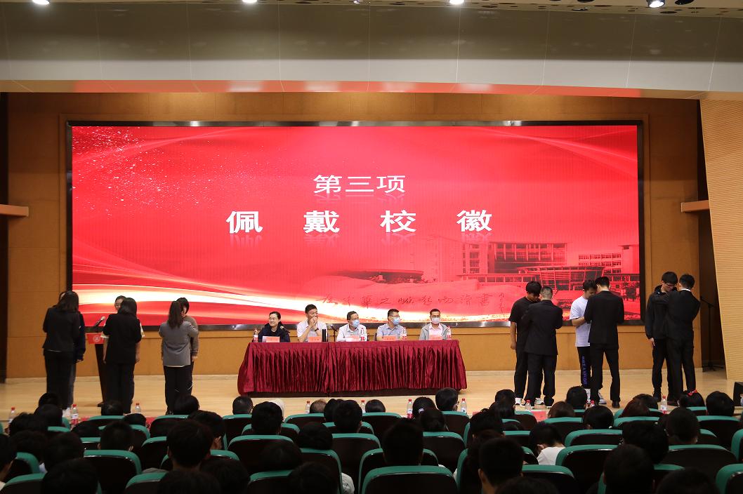 院优秀员工代表还为新生代表佩戴校徽。
