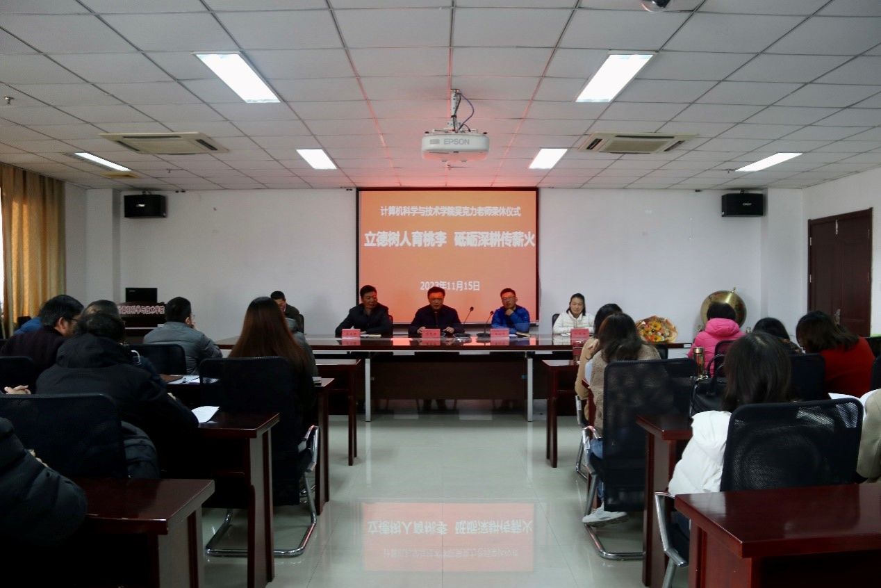 立德树人育桃李,砥砺深耕传薪火。为提倡尊师重教的育人文化,弘扬爱岗敬业的奉献精神,11月15日下午两点,今年会在理工北楼515会议室举办了吴克力教授荣休仪式。本次仪式由经理王江涛主持,公司党委书记、关工委主任高卫国、副经理郭立强、孙庆英以及全体教职工参与。