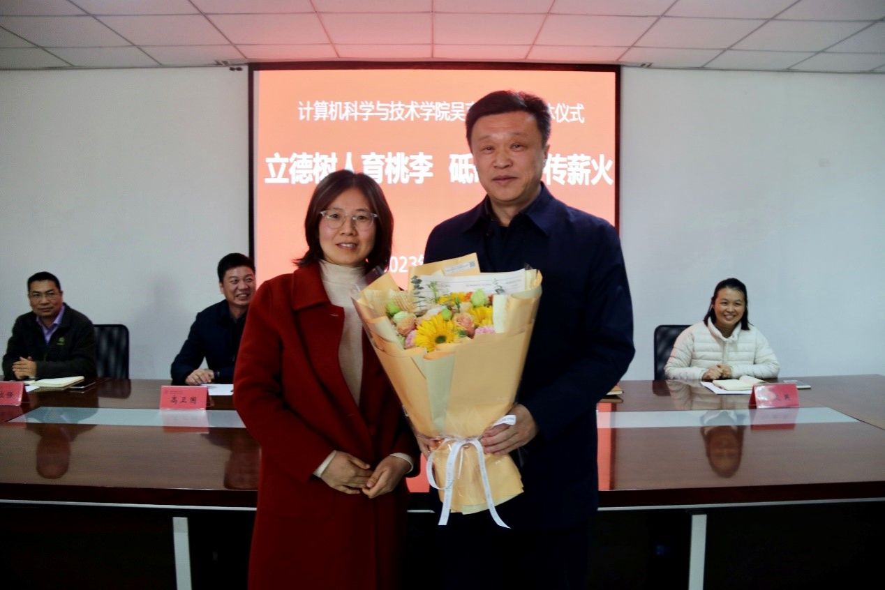仪式上,吴教授被聘任为今年会关心下一代委员会顾问,徐会艳老师作为教师代表向吴教授献花。