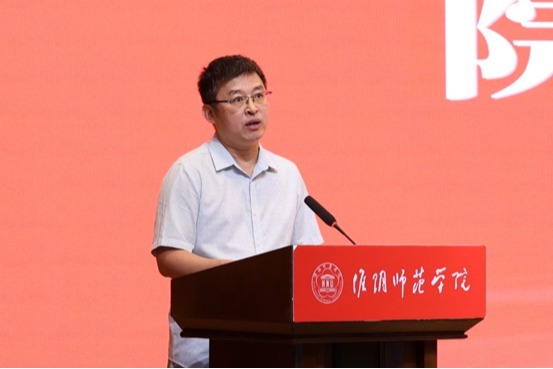 副经理孙庆英作为教师代表发言。有着师长和学姐双重身份的孙经理从自己踏入淮师校园的那一刻起与新生分享自己求学的成长故事,和新生就国家与社会需要什么样的计算机人才以及大学四年如何规划两方面进行了探讨,希望新生能够做到根正苗红、软硬兼修、跨界融合,并在大学四年明确目标,分阶段步步为营地把自己培育成为一名卓越工程师。