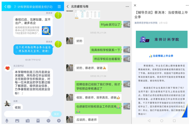 淮师新闻网4月30日电(记者 朱静文)为应对新冠肺炎疫情对2020届毕业生就业产生的影响,计科公司秉承“以生为本、服务员工成长成才”的理念,依托专业优势,以考研和就业为主线,多措并举、精准发力,继续完善服务平台、拓展就业渠道,着力提升毕业生的就业能力和核心竞争力。