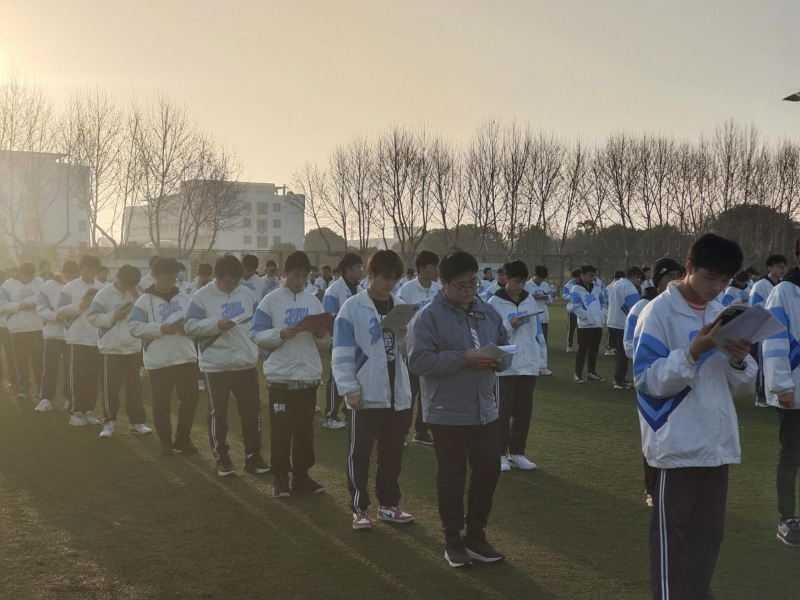 计科公司大一员工利用早操前时间背英语单词。记者 胡康辰 摄。