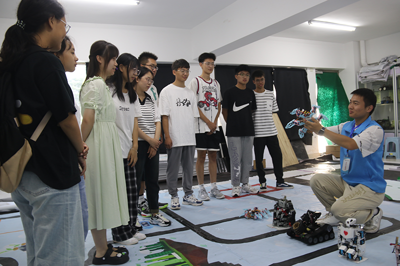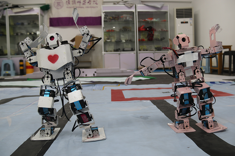 迎新当天,公司机器人创新团队特别拿出了他们在诸多学科竞赛中获奖的作品展现给新生。在报到现场,六只可爱的机器人跟随着音乐,在地面上表演着各种舞蹈动作,它们时而挥手,时而走动,时而翻跟头,吸引很多新生和家长驻足欣赏。展台上摆放着去年曾在国家级学科竞赛A类赛事中获得一等奖的智能车和一台无人机。此外,公司还通过海报、PPT等方式对机器人创新团队和C++程序设计团队的培训、比赛、获奖等内容进行了展示,很多新生对这些科技团队非常感兴趣,他们希望在未来能够加入其中,参加科技创新比赛,感受科技的无限魅力。