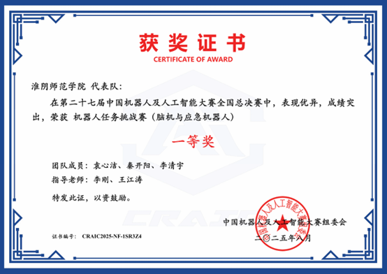 在比赛过程中,“有请下一队”团队历经了区域赛的激烈角逐,凭借扎实的专业技术成功突围,获得了全国总决赛的入场券。在总决赛现场,由于赛场观众较多,影响了指令识别的准确性,从而导致了一系列突发状况接踵而至。面对高强度压力,队员们没有丝毫退缩,迅速稳住阵脚,争分夺秒地调试代码参数、推演应对策略,高效协作逐一破解问题,最终以“行稳、眼准、心定”的过硬素质斩获了全国总决赛一等奖。