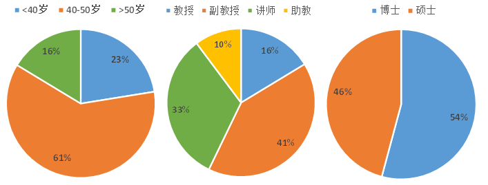 图1 专职教师年龄结构、职称结构、学位结构